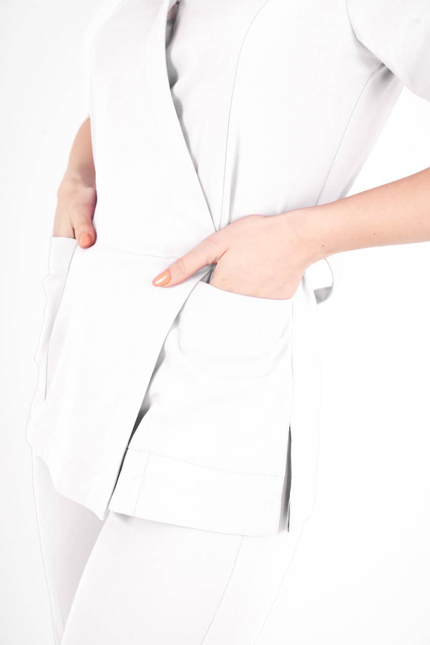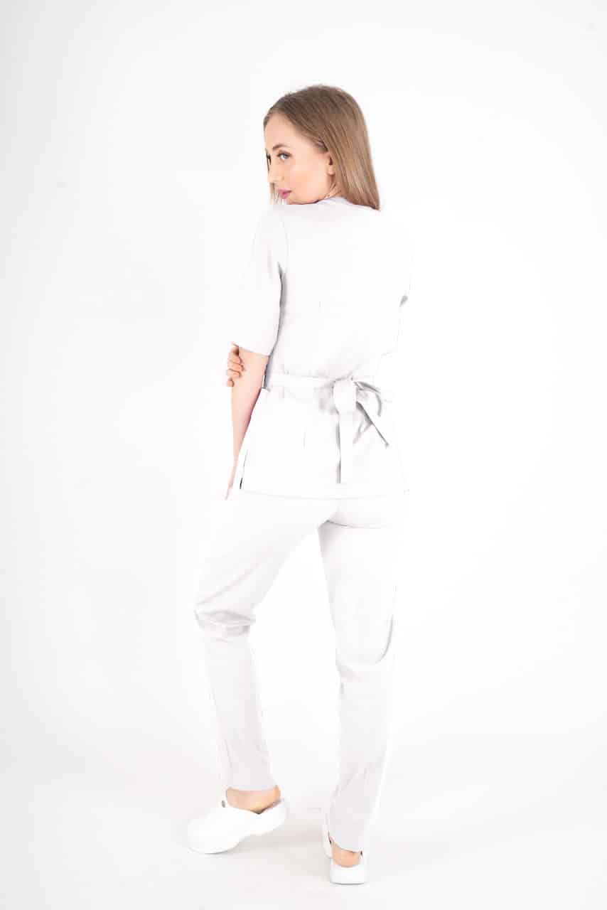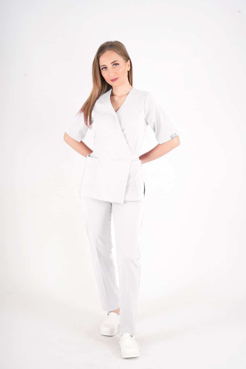 Beyaz Elegant Model Arkadan Bağlamalı Scrubs Üniforma Takımı