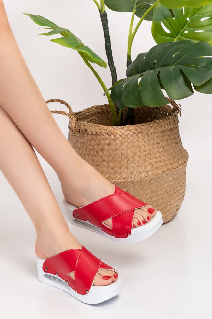 Kırmızı Renk Açık Çapraz Airmax Ortopedik Kadın Sabo Terlik 01