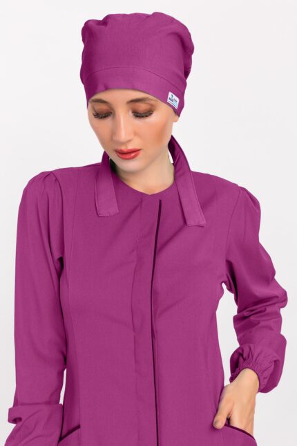 Düz Açık Mor Renk Tesettür Doktor Hemşire Hastane Medikal Tesettür Cerrahi Bonesi