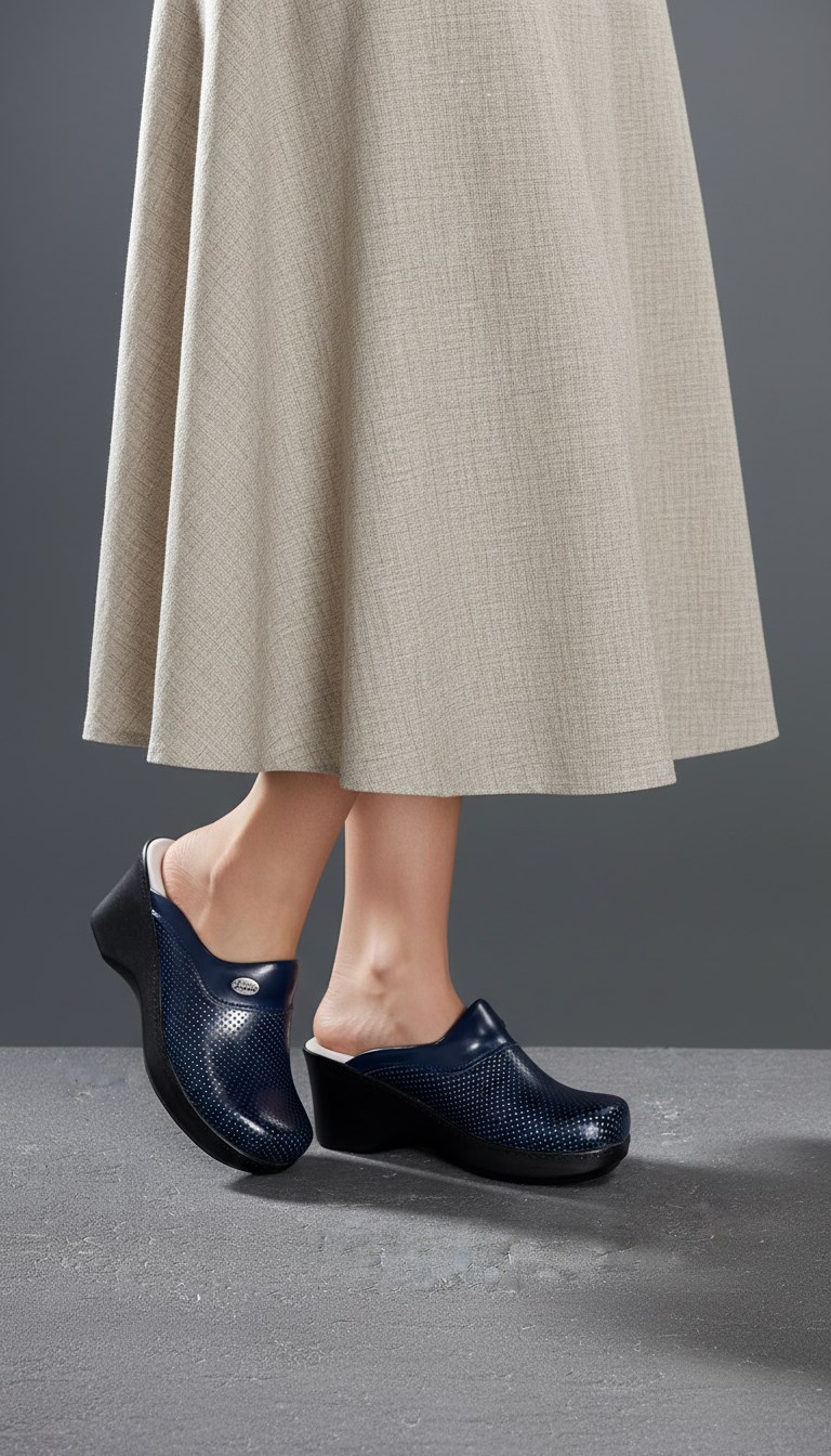 Lacivert Delikli Dolgu Topuklu Kadın Sabo Ortopedik Hemşire Doktor Aşçı Günlük Terlik