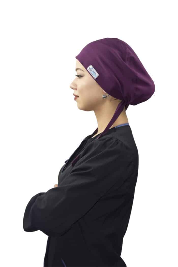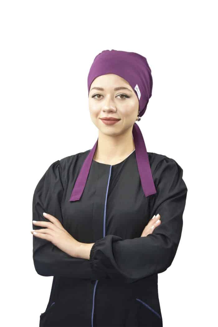 Likralı Tesettür Düz Koyu Mürdüm Doktor Hemşire Aşçı Cerrahi Tesettür Bonesi