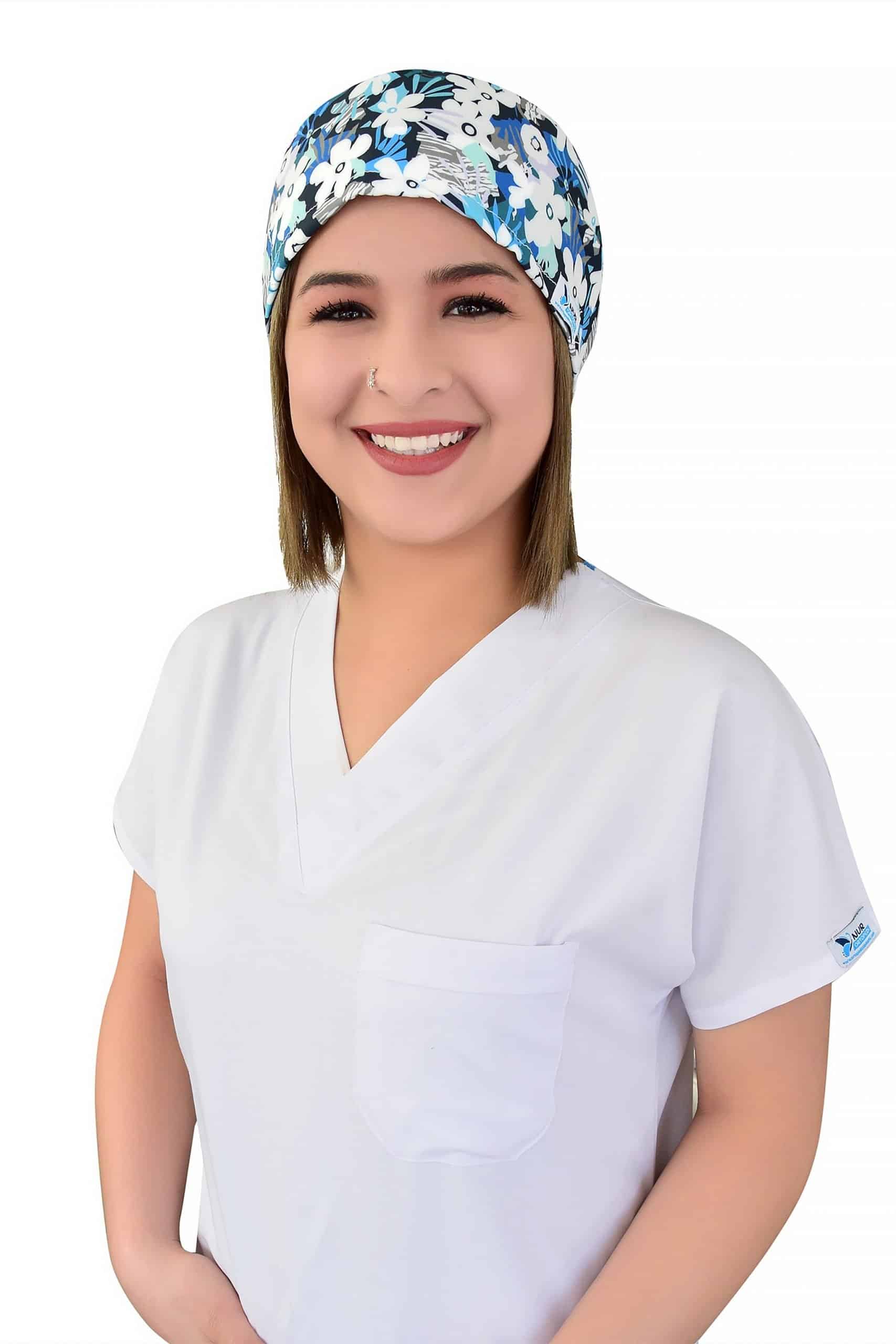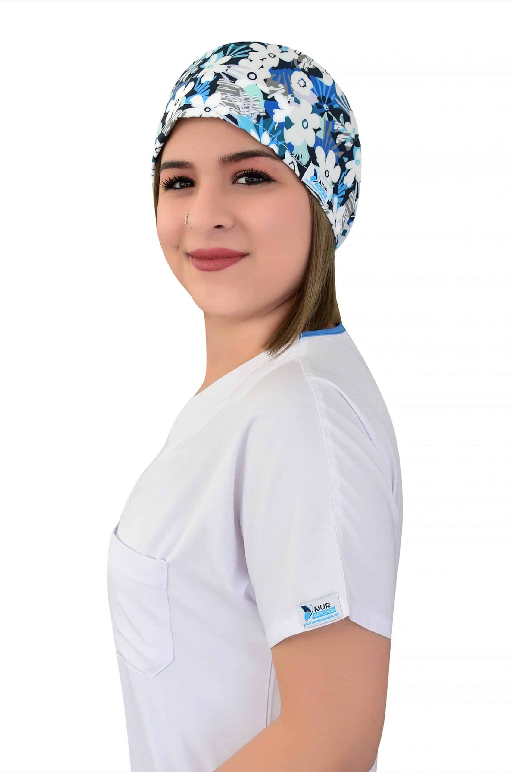 Estetik tasarım ve fonksiyonelliği bir araya getiren Beyaz Papatyalar Desenli Doktor Aşçı Bone, sağlık profesyonellerinin ihtiyaçlarına yönelik özel olarak üretilmiştir. Kafaya oturan ve arkadan lastikli bağlanabilen tasarımı, her türlü üniforma üzerine rahatlıkla takılabilme özelliğine sahiptir.