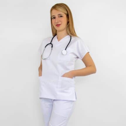 Beyaz Terikoton Doktor Hemşire Aşçı Tek Üst Cerrahi Forma