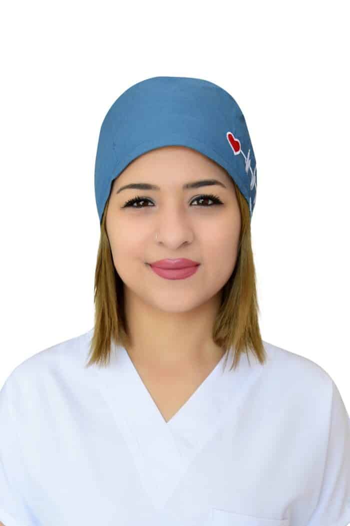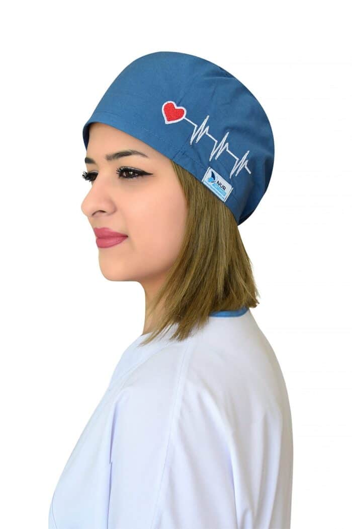 Ana Sayfa CERRAHİ BONELER Unisex Cerrahi Boneler Nakışlı Boneler Petrol Mavi Kalp Ritim İşlemeli Cerrahi Bone