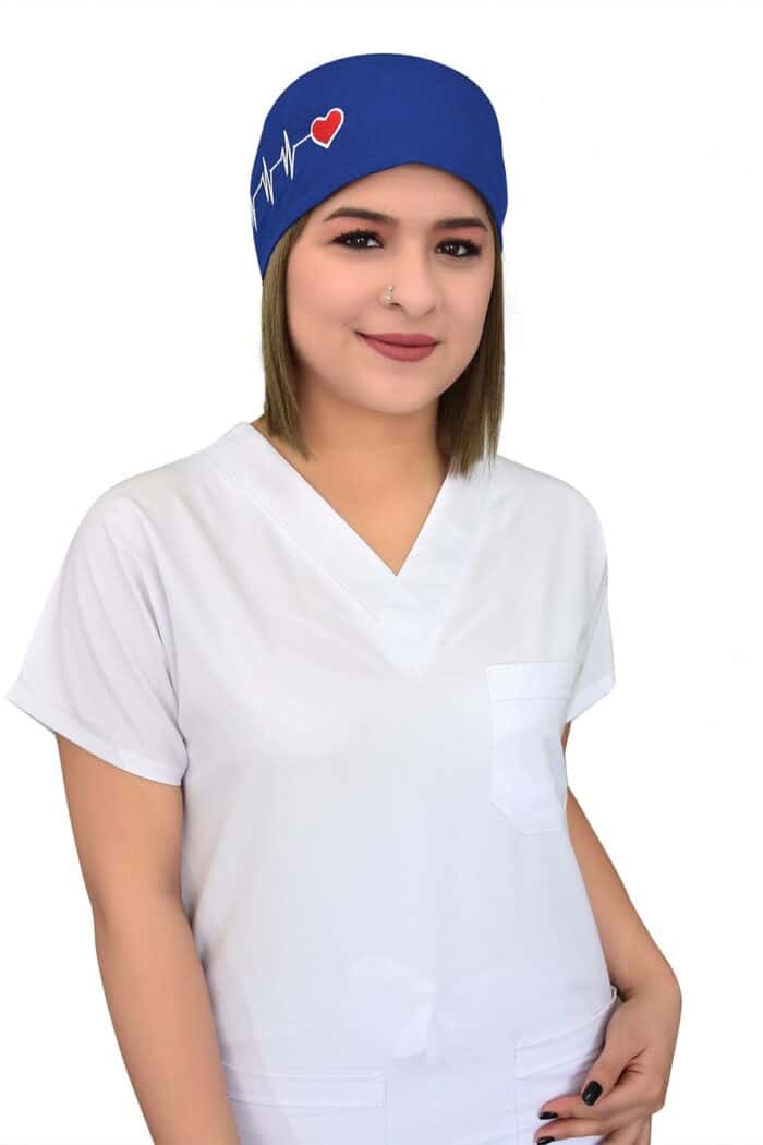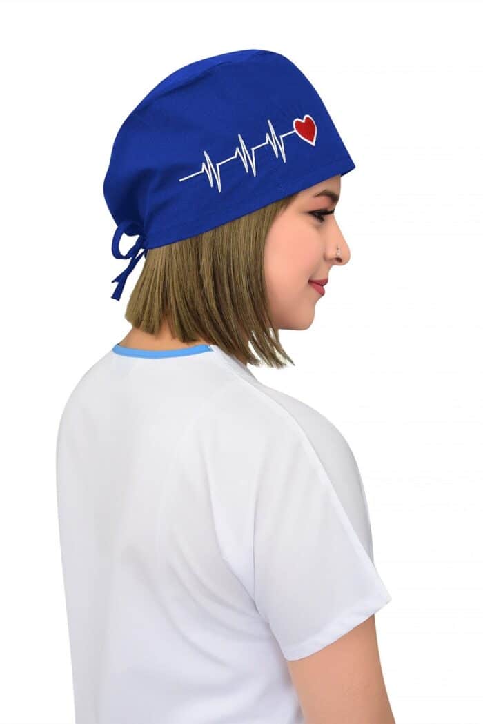 Ana Sayfa CERRAHİ BONELER Unisex Cerrahi Boneler Nakışlı Boneler Saks Mavi Kalp Ritim İşlemeli Cerrahi Bone
