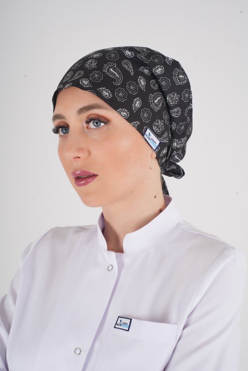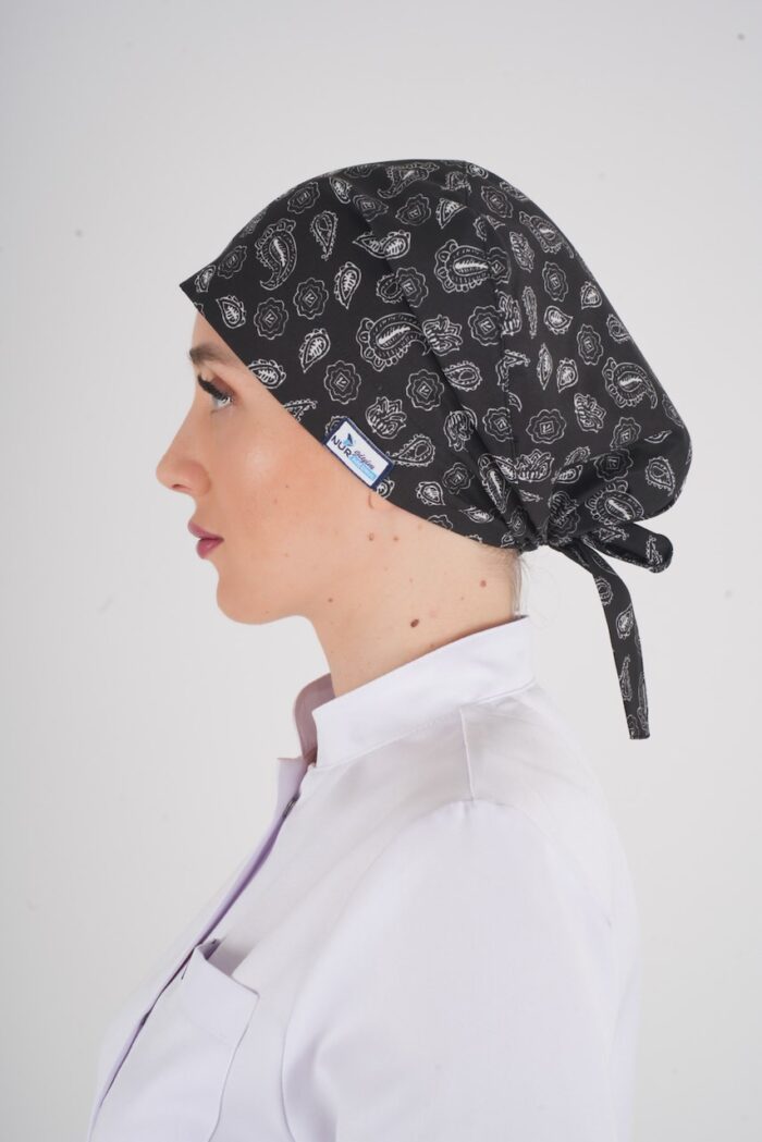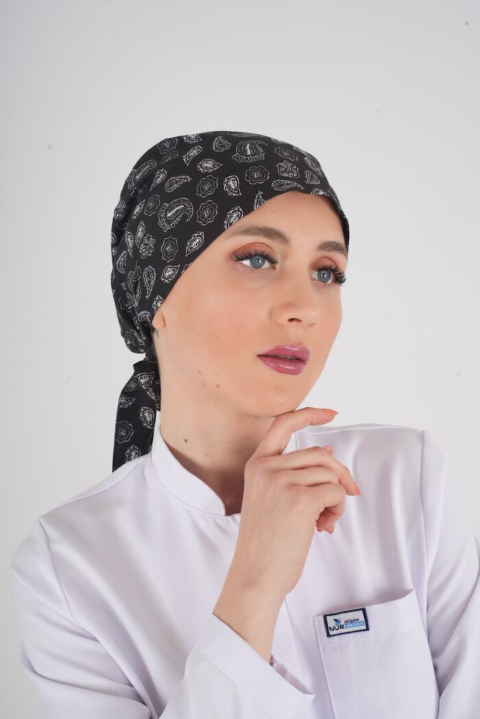 Siyah Otantik Tesettür Doktor Hemşire Aşçı Hastane Medikal Cerrahi Bonesi