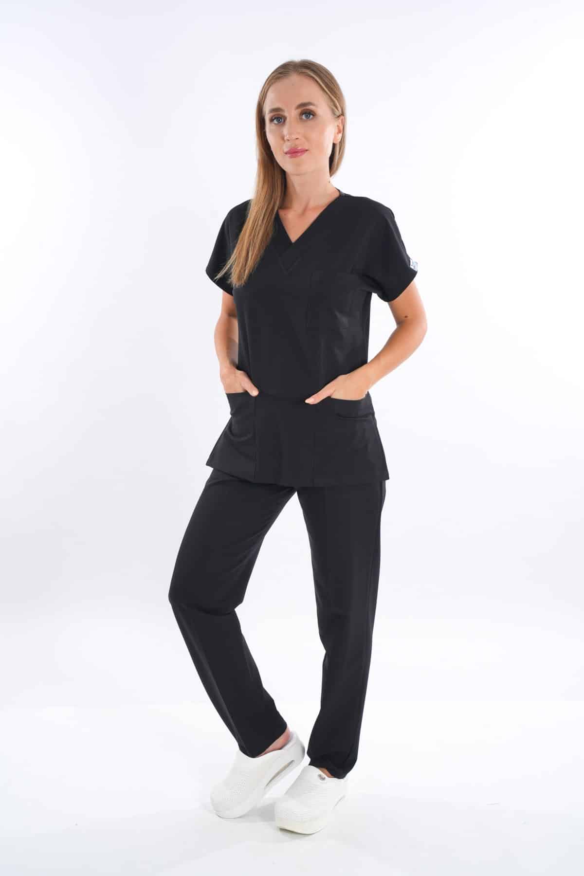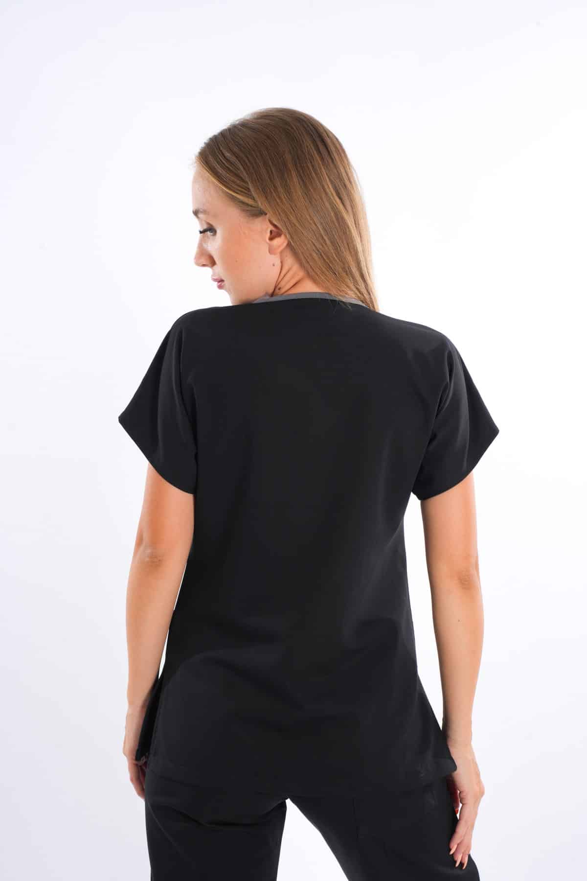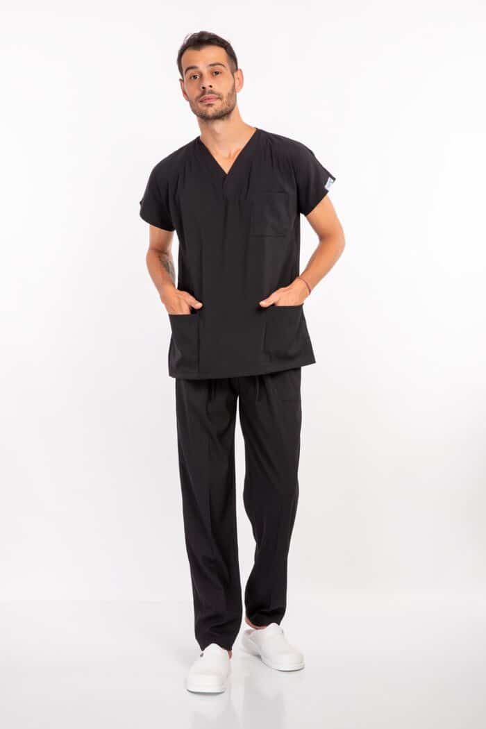 Siyah Renk Çamaşır Suyuna ve Hipoya Dayanıklı Cerrahi Üniforma Scrubs Unisex Model