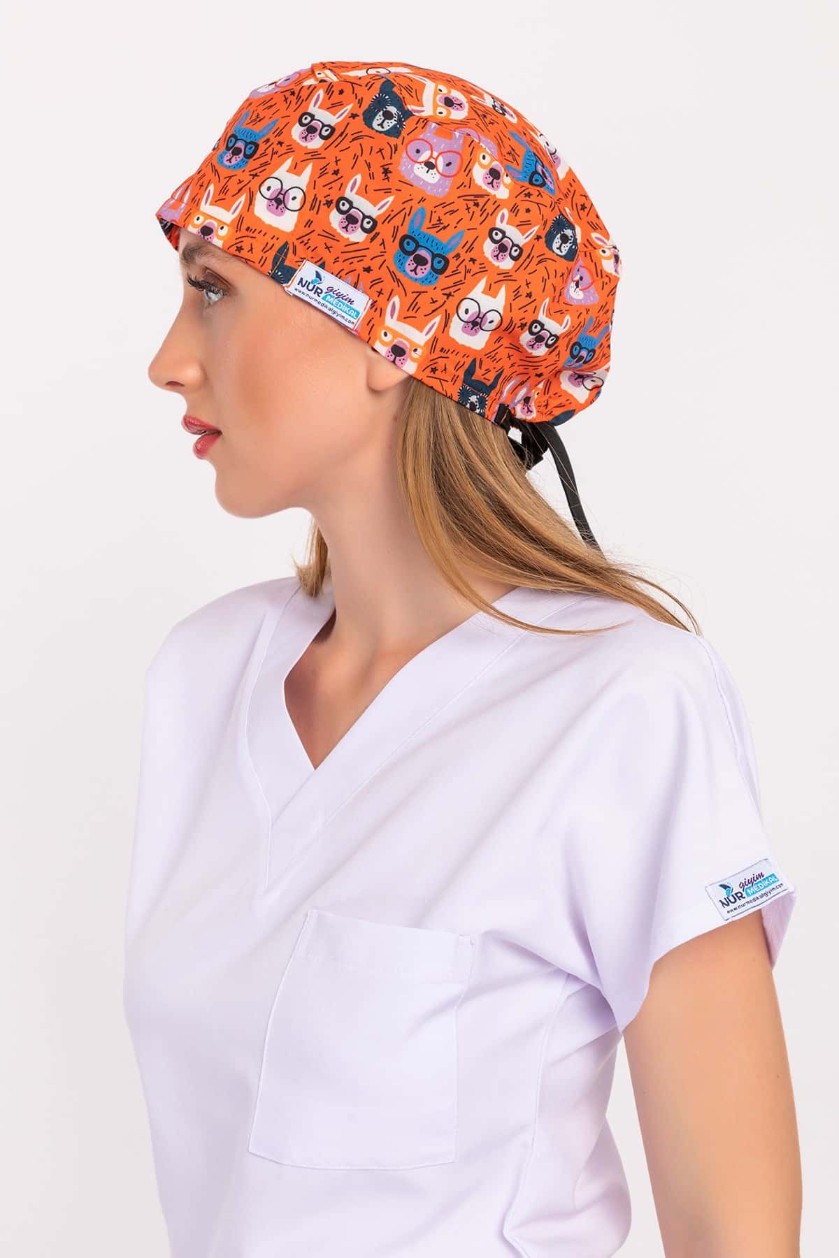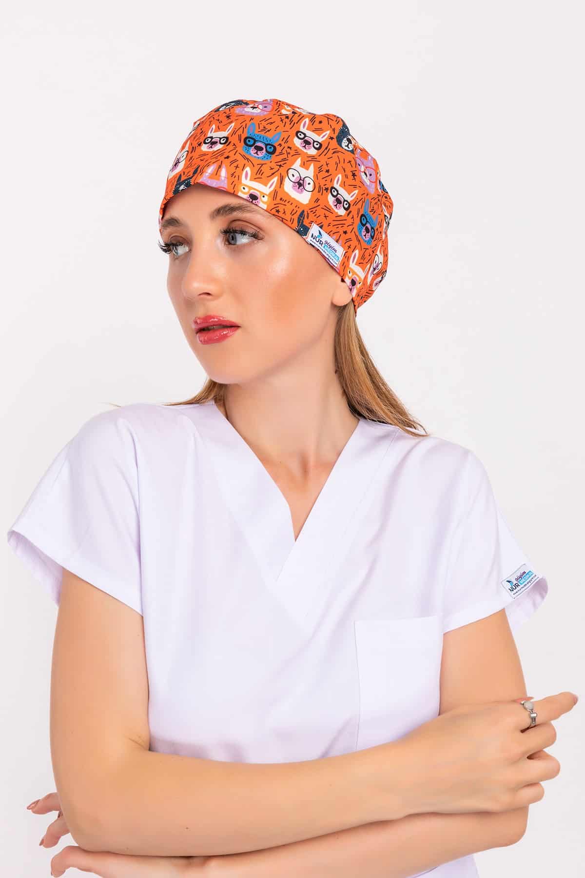 Turuncu Tavşan Desenli Hemşire Doktor Hastane Aşçı Cerrahi Bone