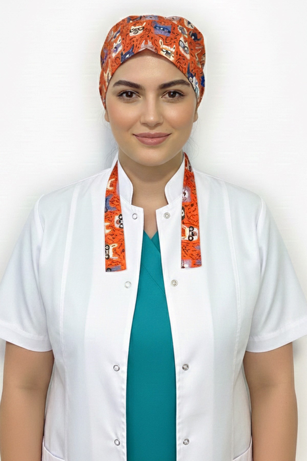 Turuncu Tavşan Desenli Tesettür Veteriner Doktor Hemşire Hastane Aşçı Cerrahi Bone