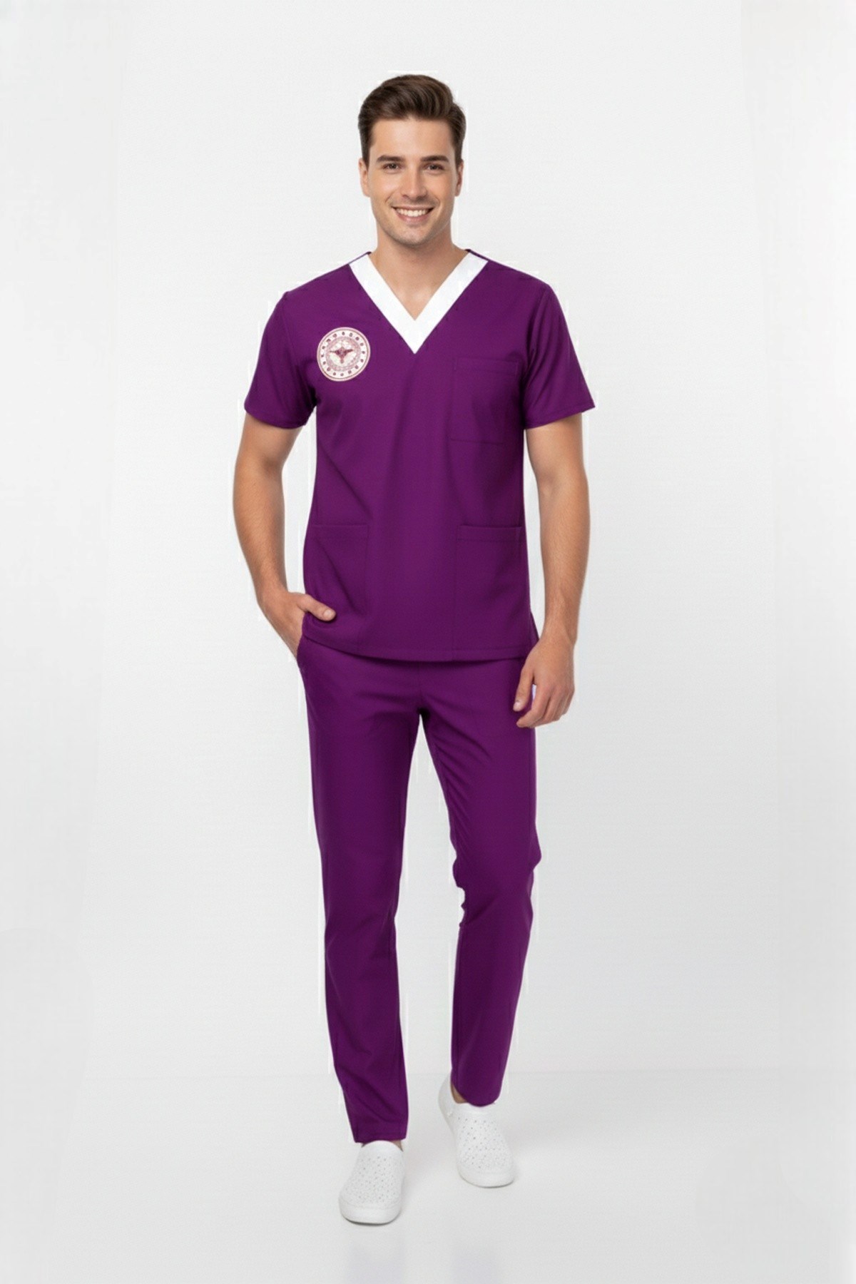 Unisex Byzantium Mor Sorumlu Ebe Scrubs Üniforma Takım (Sağlık Bakanlığı Yeni Yönetmeliğe Uygun)