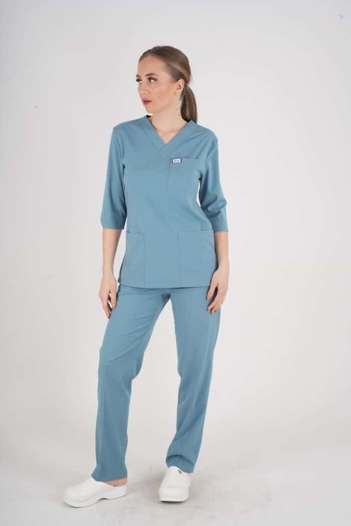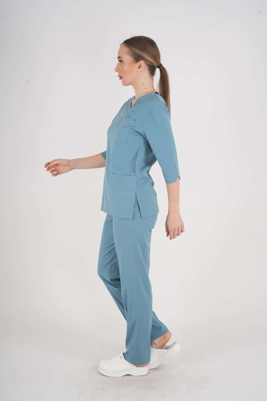 Hastane, klinik ve ameliyathane ortamlarında rahatlıkla giyilebilen bu scrubs takım, sağlık çalışanlarının performansını artıracak şekilde tasarlanmıştır.