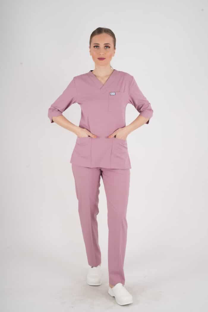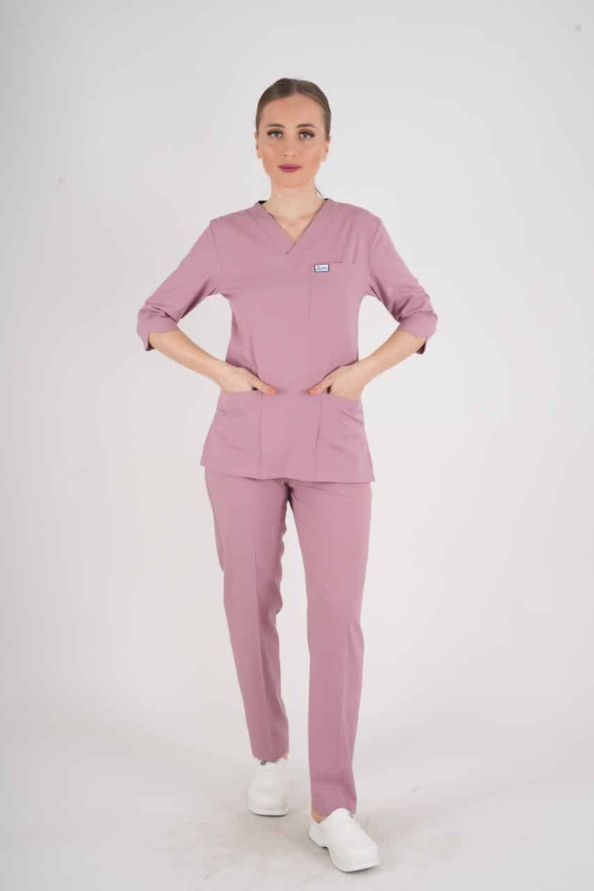 Ana Sayfa ÜNİFORMA TAKIMLAR Likralı Takımlar Violet Likralı Scrubs Takımlar Unisex Pudra Violet Model Scrubs Takım Doktor Hemşire Üniforması