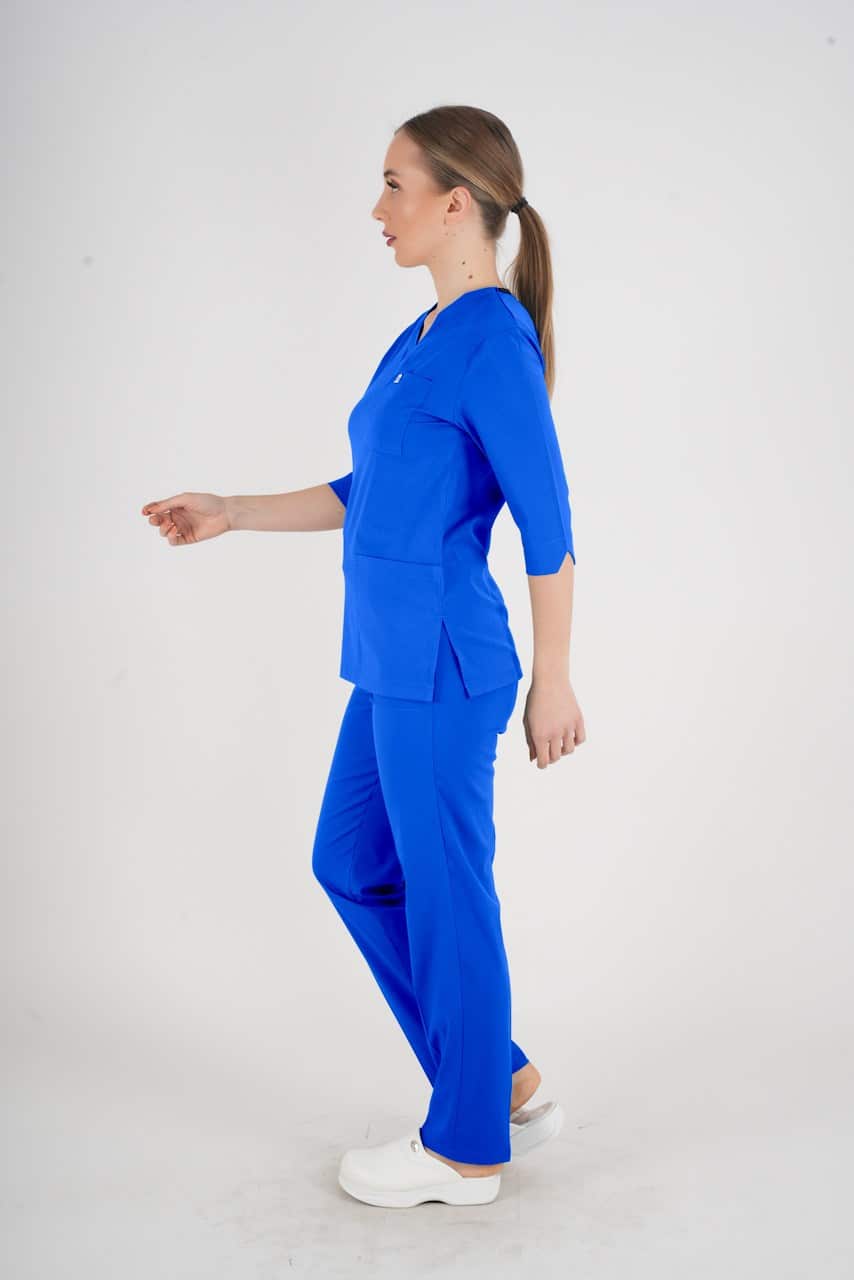 Hastane, klinik ve ameliyathane ortamlarında rahatlıkla giyilebilen bu scrubs takım, sağlık çalışanlarının performansını artıracak şekilde tasarlanmıştır.
