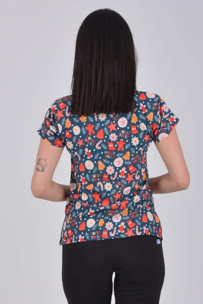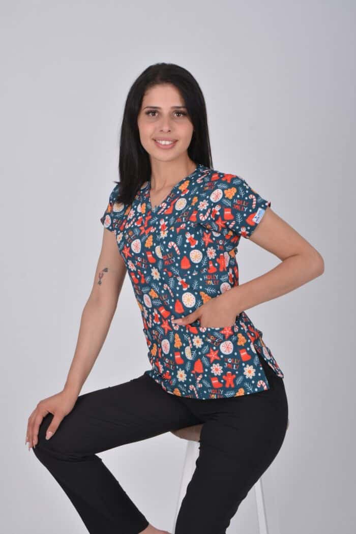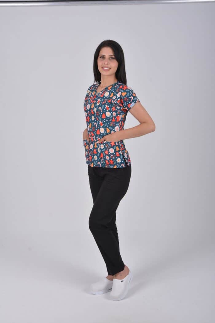 Unisex Yılbaşı Desenli Doktor Hemşire Öğretmen Aşçı Scrubs Üniforma Takımı