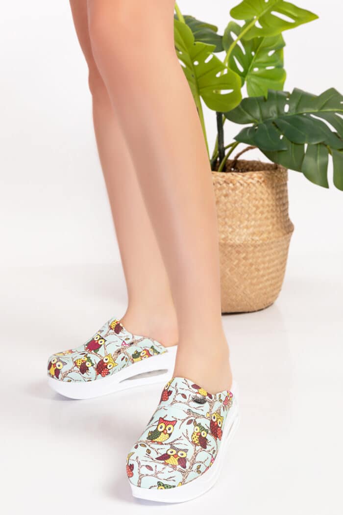 Su Yeşil Baykuş Desenli Kapalı Airmax Bayan Sabo Terlik 953